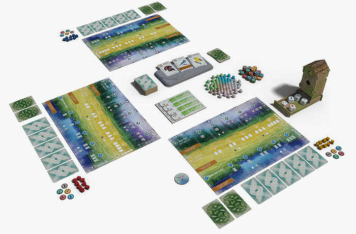 Ihr seid Vogelliebhaber – Forscher, Vogelbeobachter und Ornithologen – und versucht eine Vielzahl an unterschiedlichen Arten anzulocken. Sammelt Vögel im gleichen Lebensraum und bildet so starke Kombinationsketten aus besonderen Fähigkeiten. Jeder der drei Lebensräume auf eurem Spielertableau steht für einen Aspekt eurer Aufgabe: