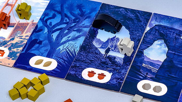 Trails greift das Thema Nationalparks der USA auf (genauso wie das große Schwesterspiel Parks), ist genauso schön gestaltet, dabei aber einfacher, schneller erklärt und gespielt.