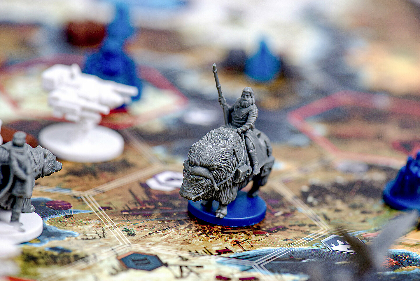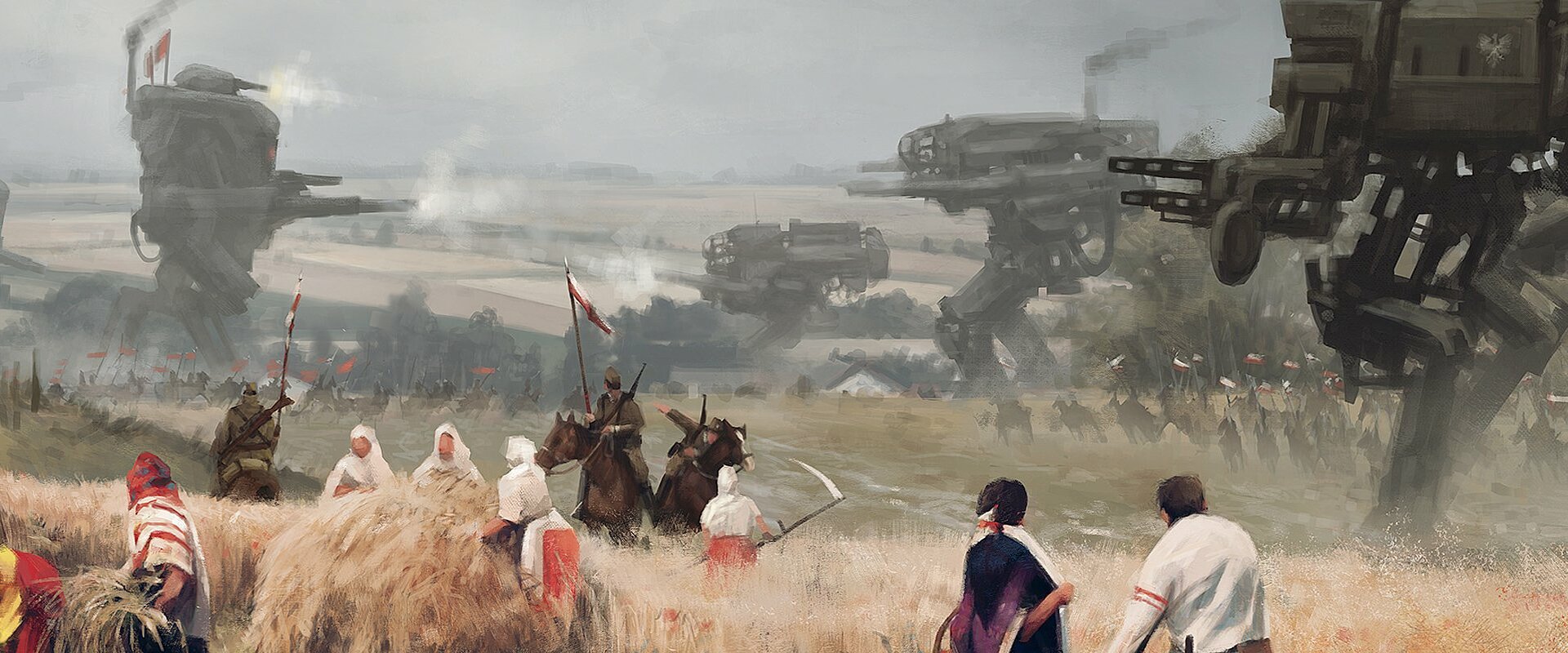 Oft beginnt ein Spiel mit der Idee für eine bestimmte Spielmechanik. Bei Scythe jedoch war das anders. Der Autor Jamey Stegmaier entdeckte die illustrierte Welt 1920+ von Jakub Rozalski und war absolut begeistert. Da seine Fantasie kaum zu bremsen war, nahm er Kontakt mit Jakub auf. Daraufhin arbeitete sie zusammen an einem Spiel, das die Atmosphäre dieser Welt einfängt. Letztendlich entstand Scythe, das erstmals 2016 veröffentlicht wurde. Das Spiel wurde auf Kickstarter zu einem Hit und ist bis heute ein Dauerbrenner. Schnell folgte die erste Erweiterung mit zwei weiteren Fraktionen. 2017 erschien dann die zweite Erweiterung, die in Zusammenarbeit mit einem Scythe-Fan entstand. 2018 erschien letztendlich die dritte und letzte große Erweiterung für Scythe. In Aufstieg der Fenris ist es auf grandiose Weise gelungen, die thematische Hintergrundgeschichte von Scythe einzufangen und als Kampagne spielbar zu machen.