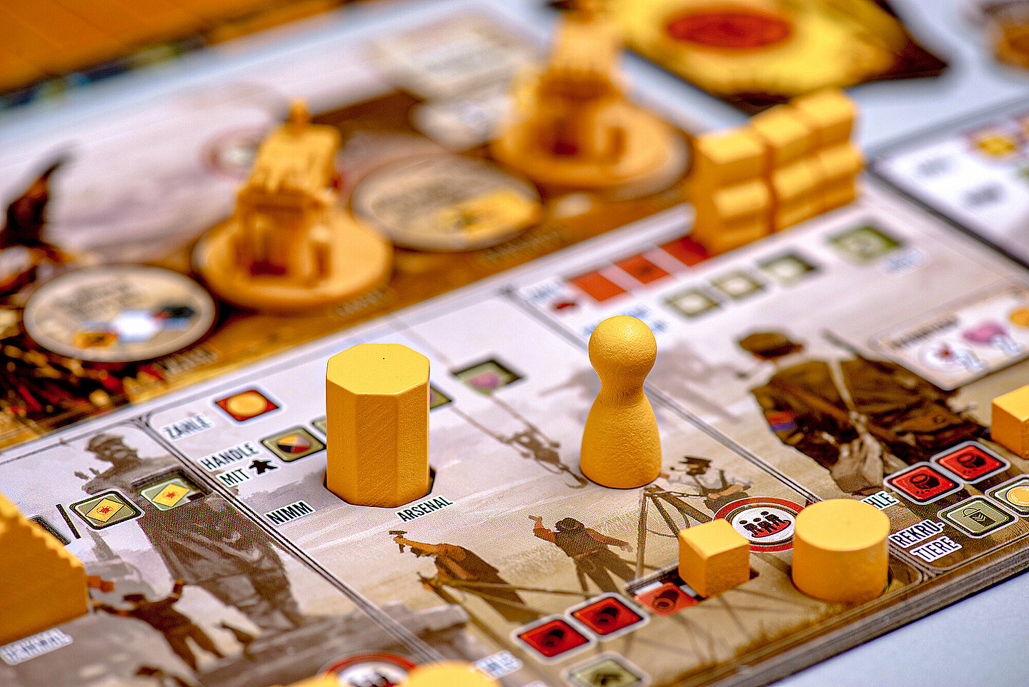 Scythe verwendet dazu einen einfachen Aktionsauswahlmechanismus, um das Spieltempo hoch zu halten. Obwohl es direkte Konflikte gibt, können eure Einheiten nicht getötet oder zerstört werden. Dennoch müsst ihr euch jeden Kampf gut überlegen, denn wenn ihr zu kriegerisch unterwegs seid, sinkt euer Ansehen und es ist schwieriger Punkte zu erhalten ...
